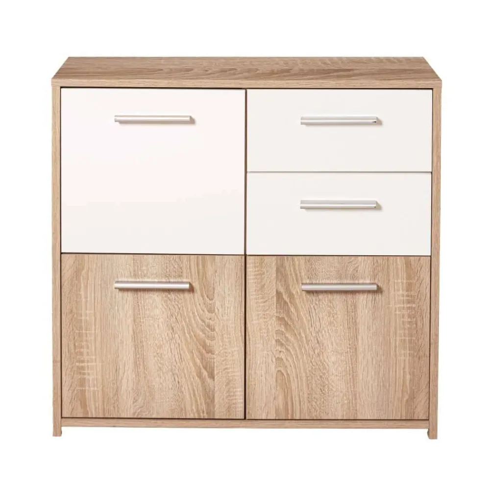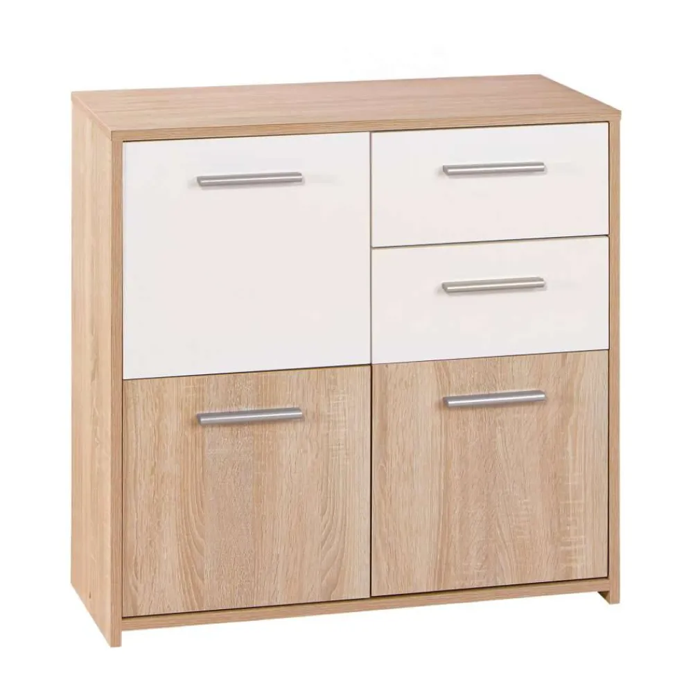 - Dezente Kommode in Weiß und Sonoma Eiche