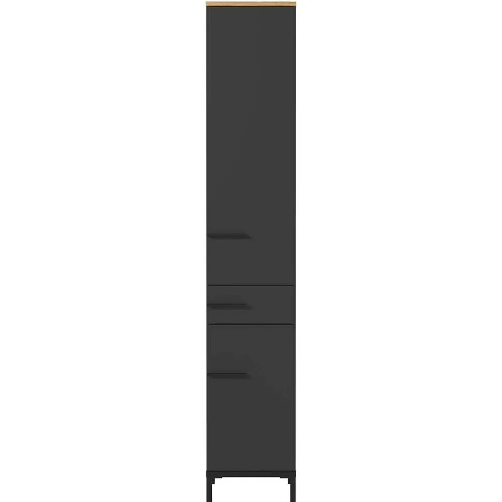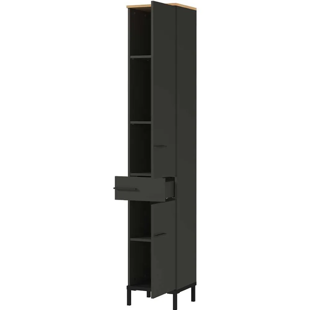 - Attraktiver Bad Hochschrank in Dunkelgrau und Eichefarben