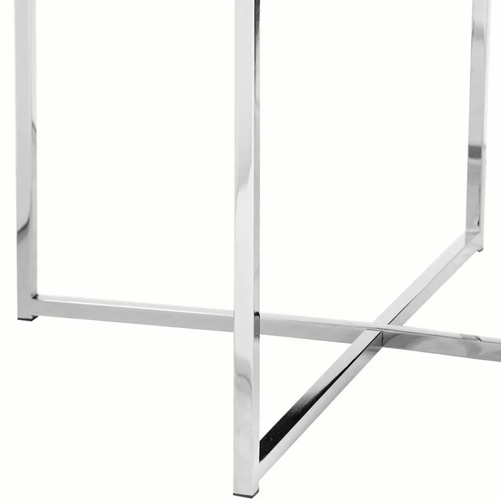 - Ansprechender Beistelltisch in Weiß, Hellgrau und Chromfarben
