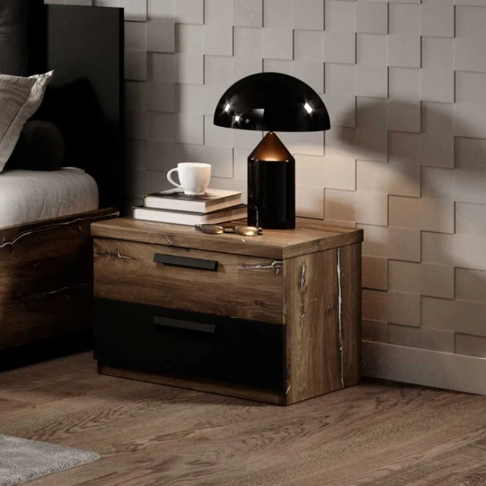 - Kompakte Nachtkommode in Eiche dunkel, Silberfarben und Schwarz