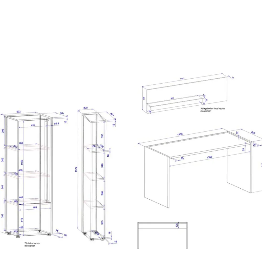 - Farblich abgesetzte Ablage, Maße (BxT): ca. 90×16,6 cm, rechts- oder links montierbar