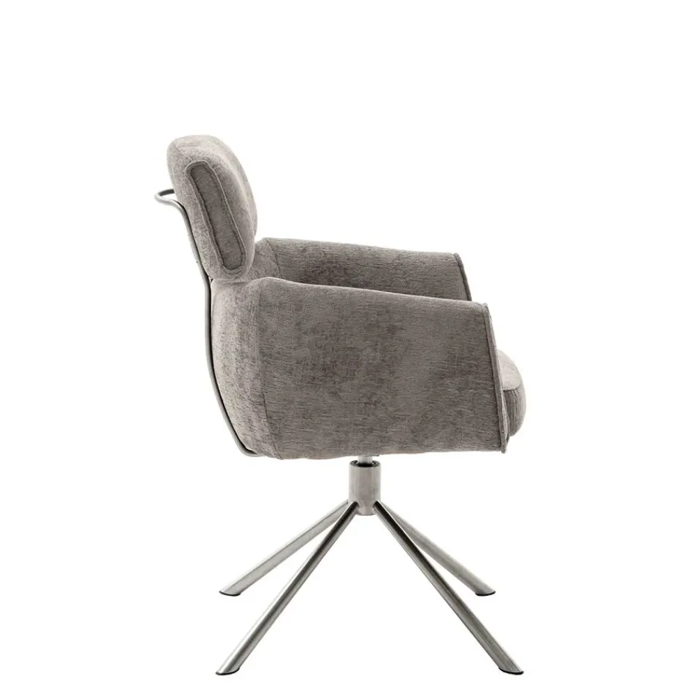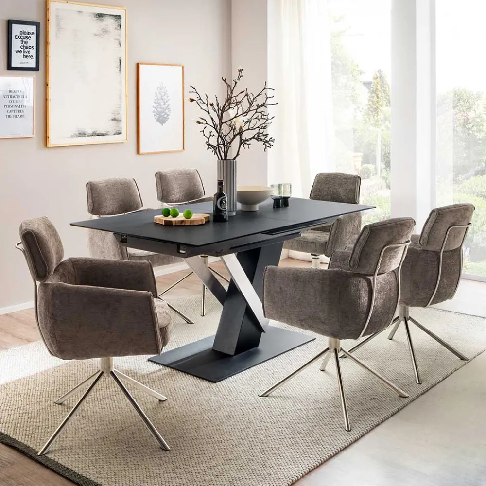 - Standsicheres, abgespreiztes Gestell aus gebürstetem Edelstahl