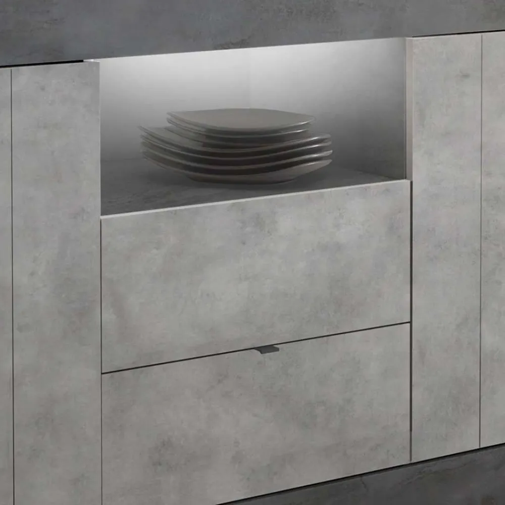 - Pflegeleichte, melaminbeschichtete Oberfläche, Korpus in dunkelgrauer Stein-, Rest in Betonoptik