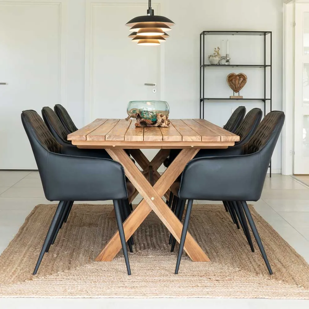 - Aus Teak Recyclingholz, Stahl und Kunstleder hergestellt