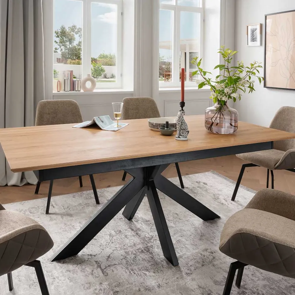 - Exklusiver Esstisch in Wildeichefarben und Schwarz