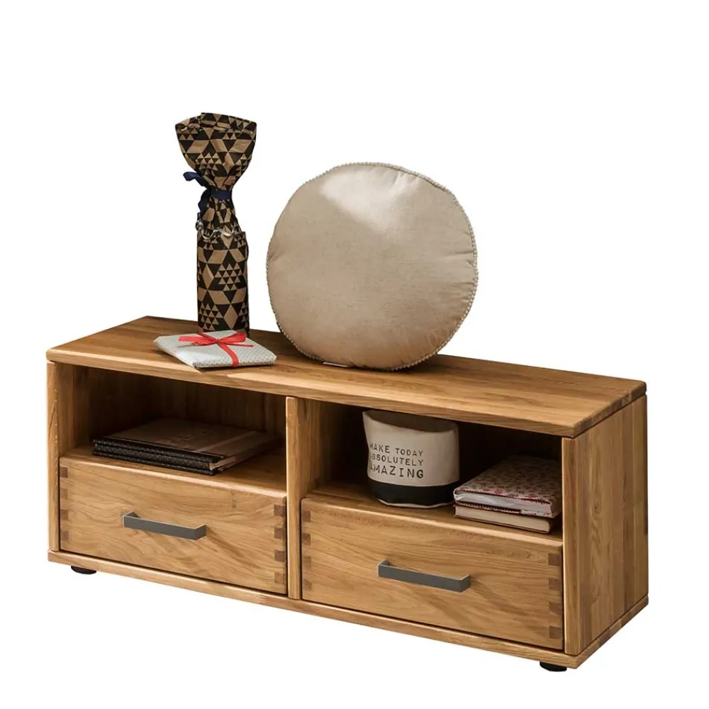 - Zwei Schubkästen mit Metall-Selbsteinzug und zwei offene Staufächer