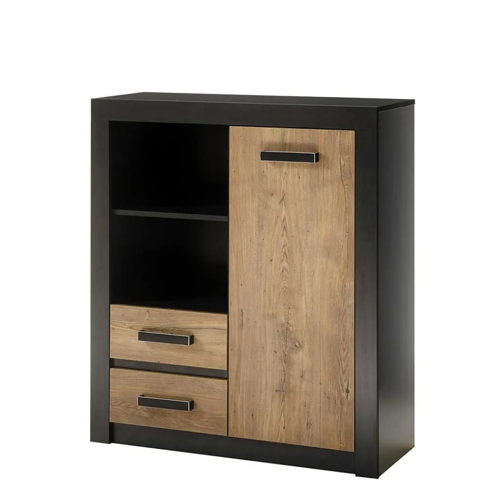 - Oberflächen in Holzoptik Kastanie und in Schwarz melaminbeschichtet