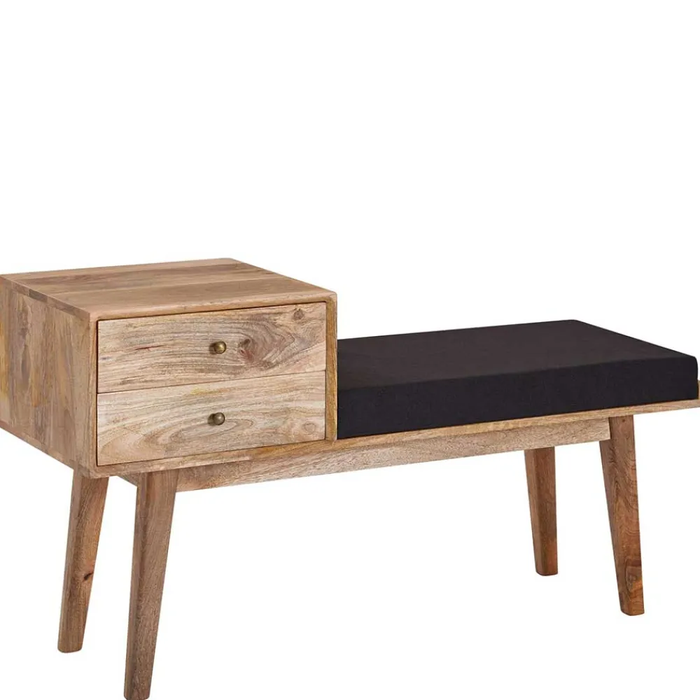 - Klasse Flur Sitzbank in Holz Naturfarben und Schwarzgrau