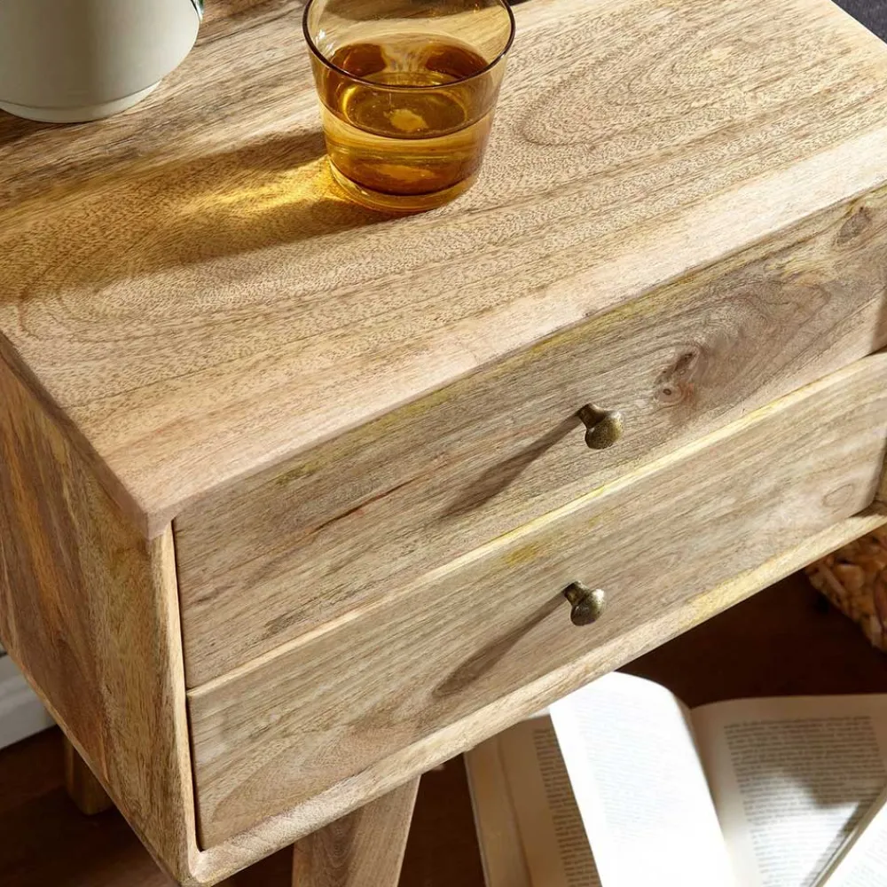 - Zwei Schubladen mit Holzauszug und Knopfgriffen