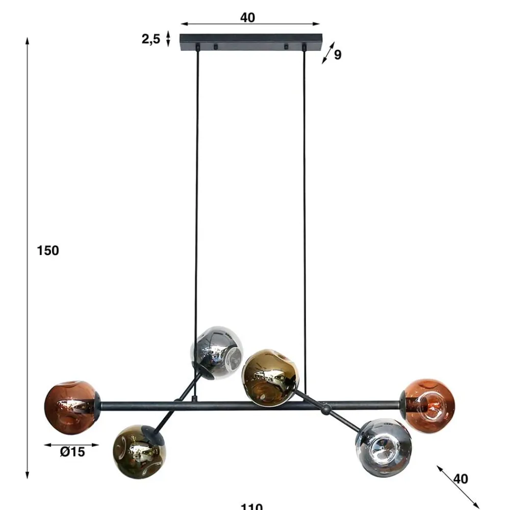 - Lieferung ohne Leuchtmittel, sechs Fassungen E27, Schutzart IP20, max. 60W