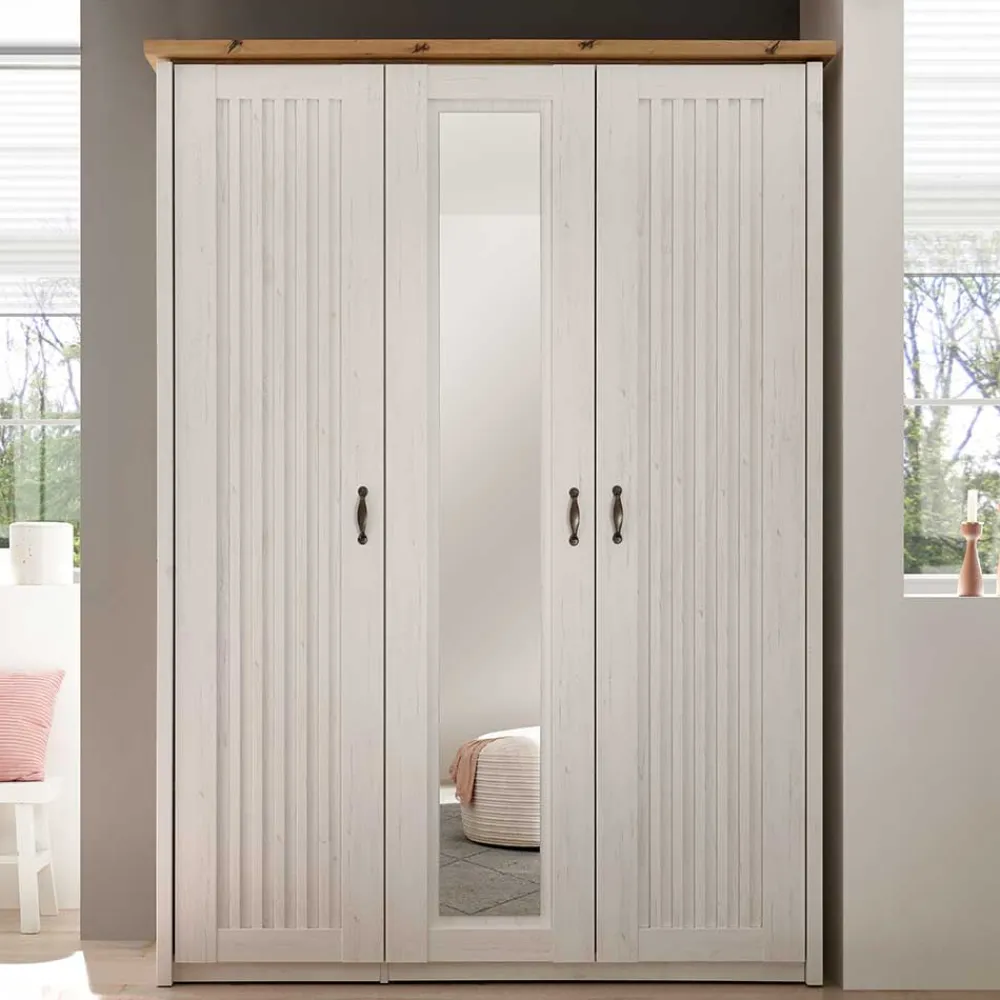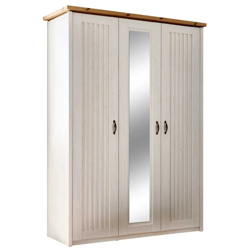- Formschöner Kleiderschrank in Pinie Weiß und Eichefarben
