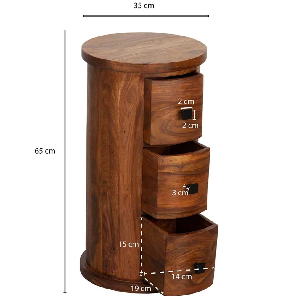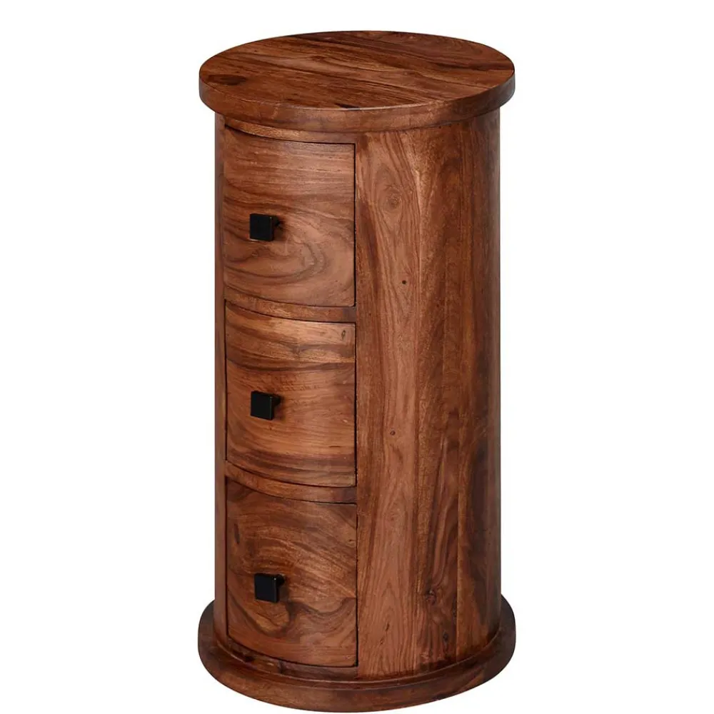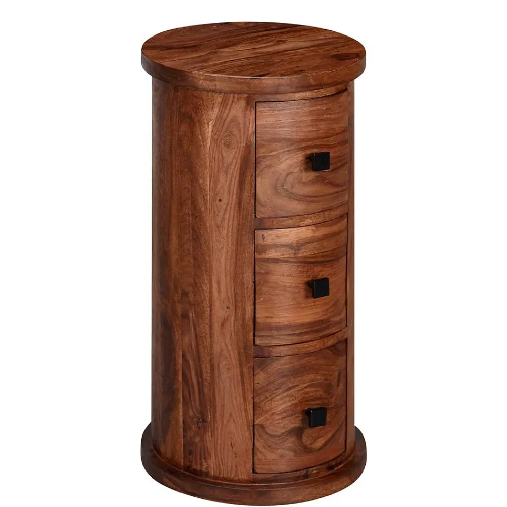 - Interessante Säulenkommode in Mangoholz Naturfarben
