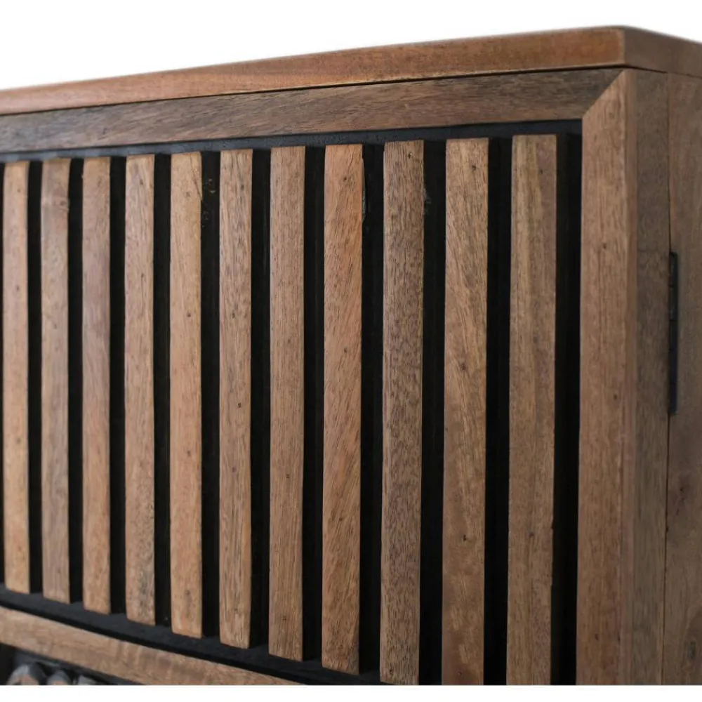 - Attraktiver Schrank in Mangoholz Naturfarben und Schwarz