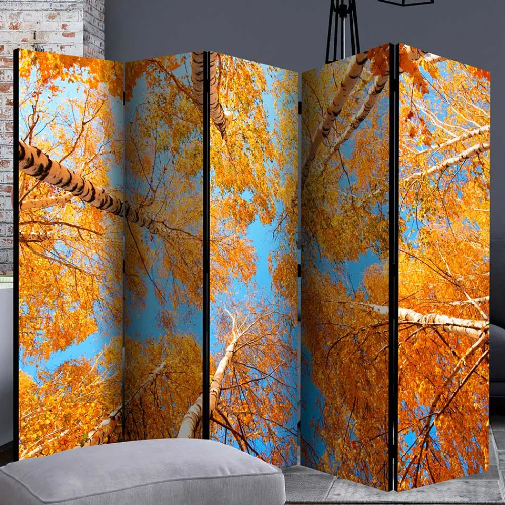 - Das Motiv zeigt Birken im Herbst aus der Froschperspektive