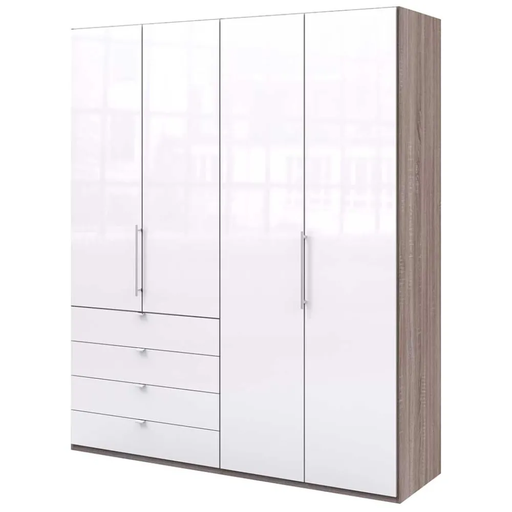 - Modischer Kleiderschrank in Weiß und Eiche Trüffelfarben