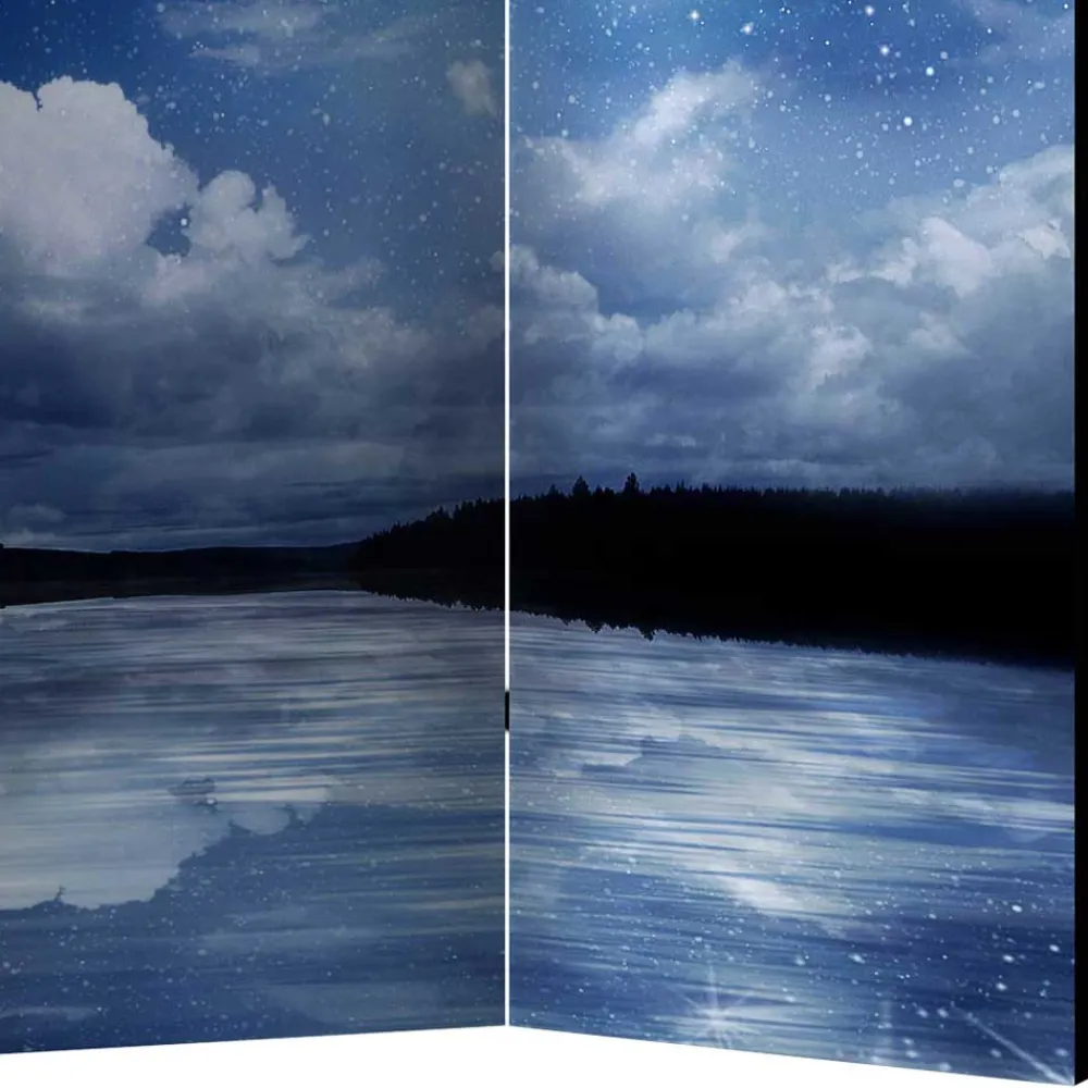 - Beeindruckender Paravent in Blautönen und Weiß