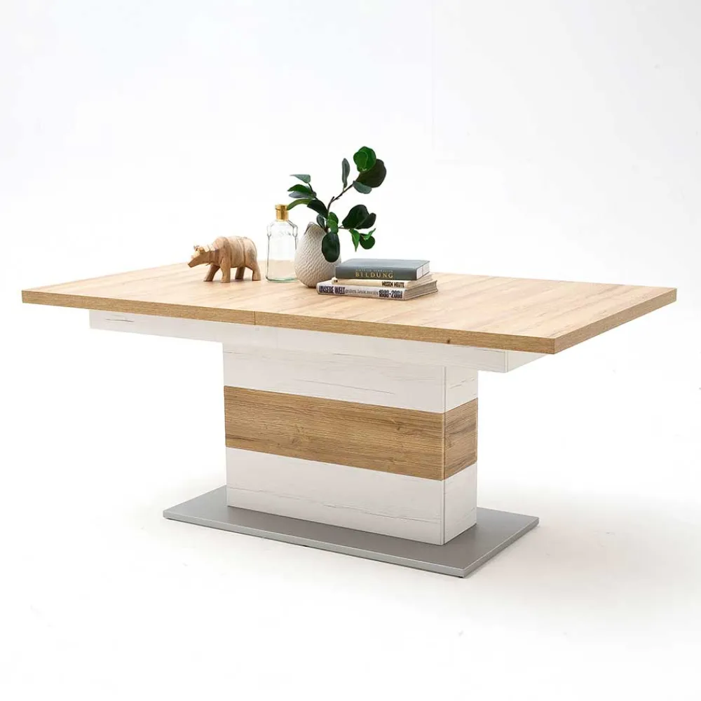 - Solider Esstisch in Pinie Weiß und Eichefarben