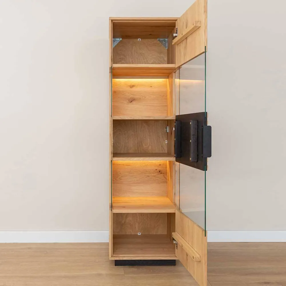 - Ansprechende Vitrine in Eichefarben und Schwarz