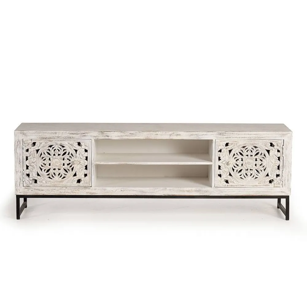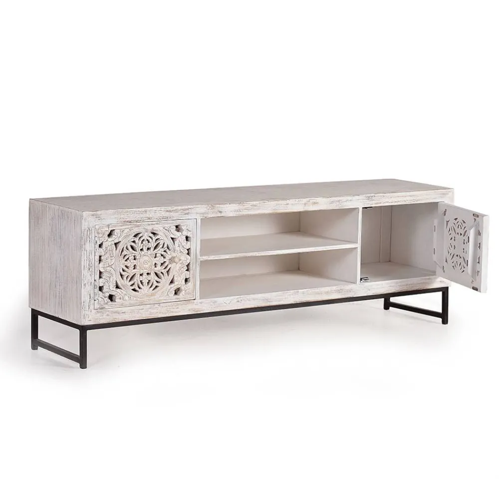 - Ansprechendes Lowboard in Holz White Wash und Schwarz