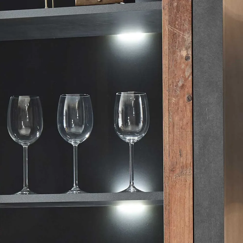 - Moderne Vitrine in Dunkelgrau und Altholz Optik