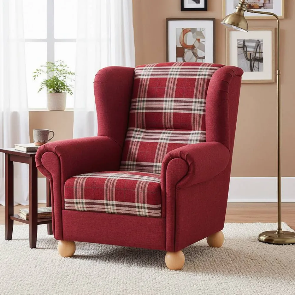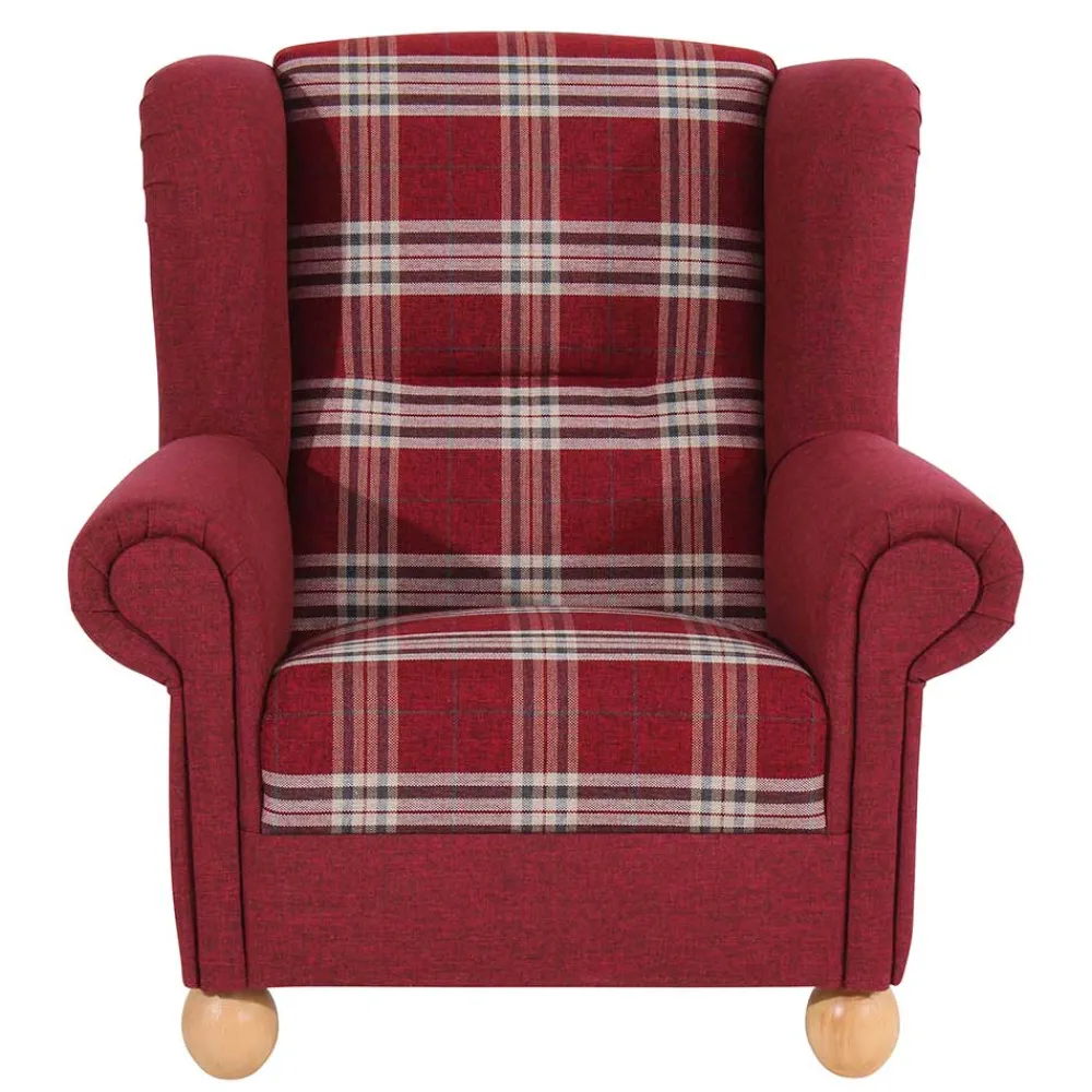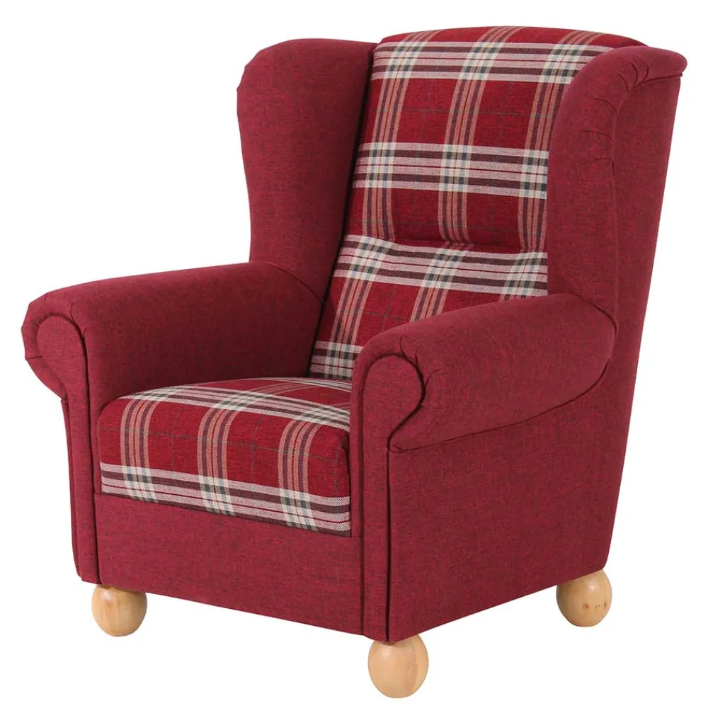 - Attraktiver Sessel in Rot kariert und Buchefarben