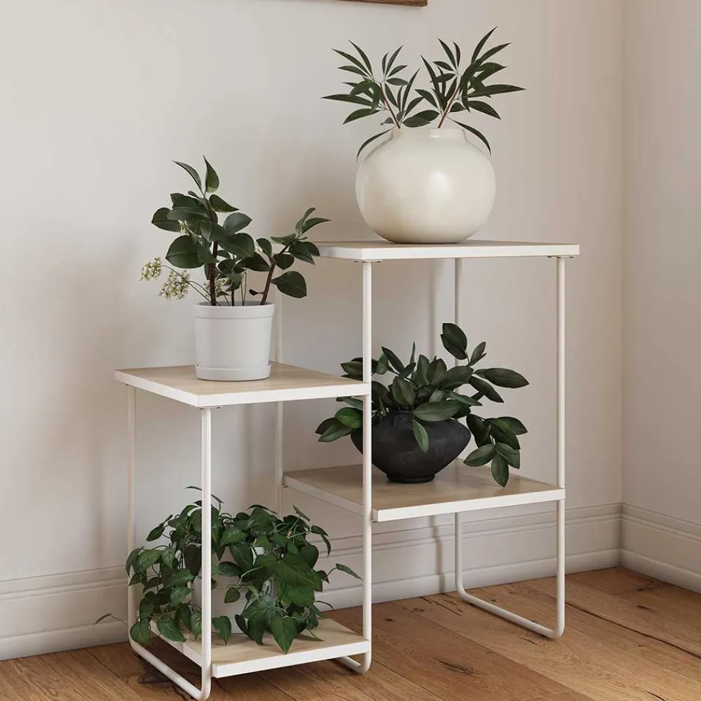 - Raffinierter Blumenständer in Holz Naturfarben und Weiß