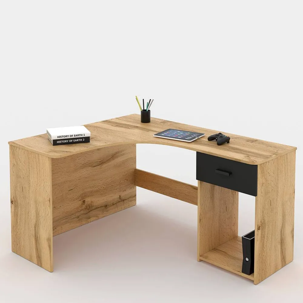- Funktionaler Eckschreibtisch in Wildeichefarben und Schwarzgrau