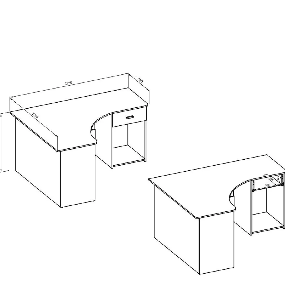 - Ergonomisch gerundete Tischplatte mit einer Stärke von ca. 1,5 cm