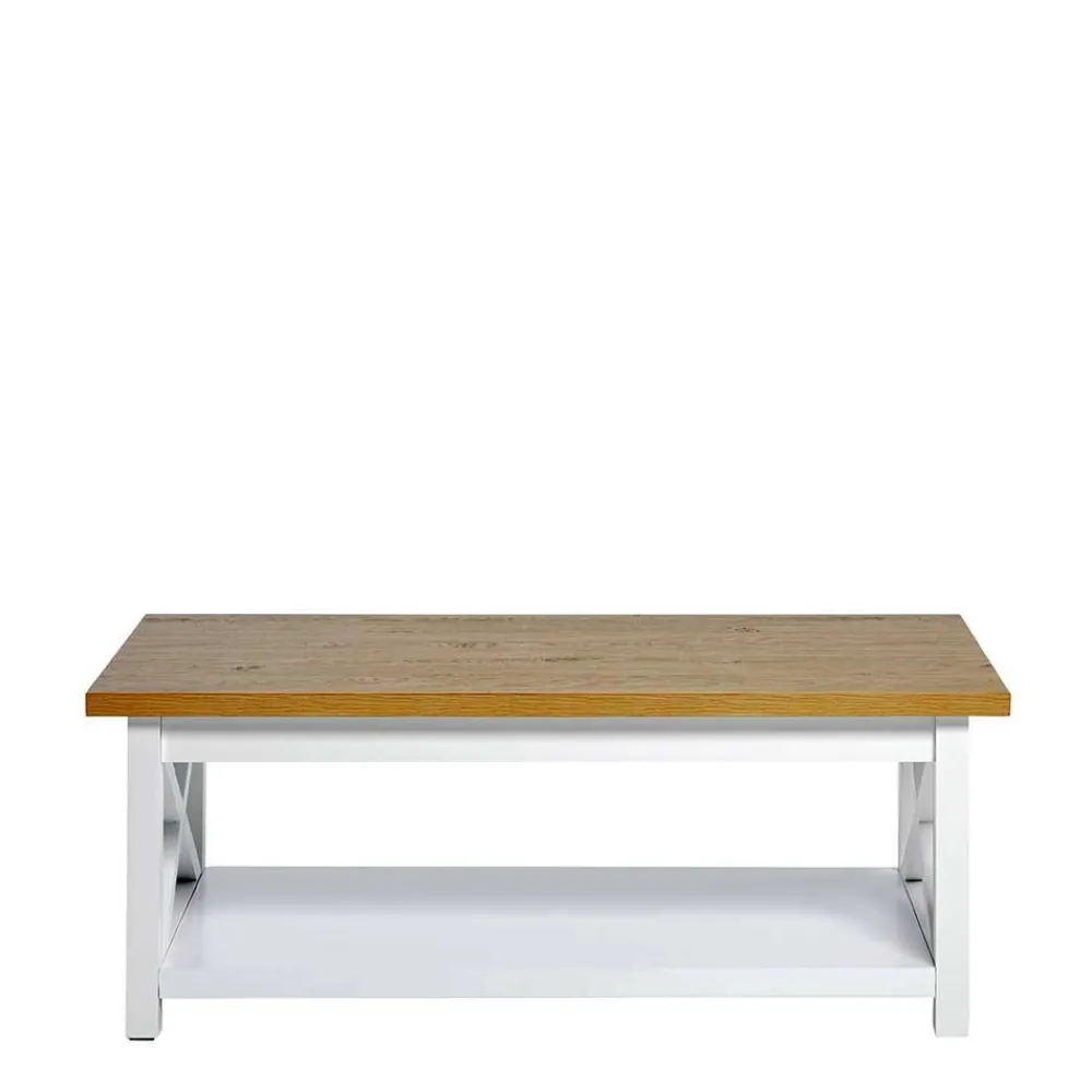 - Stilvoller Couchtisch in Weiß und Eichefarben