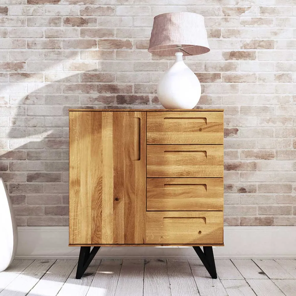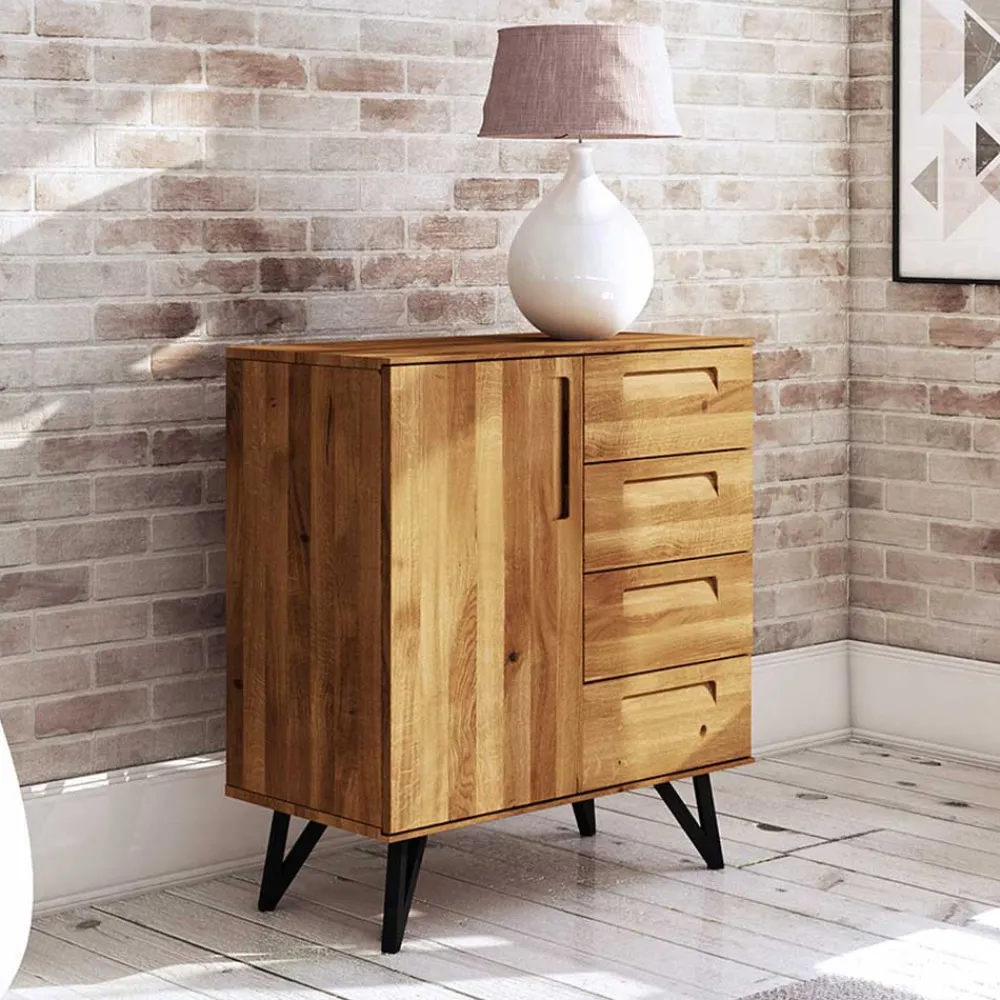- Hergestellt aus Wildeiche Massivholz und Stahl