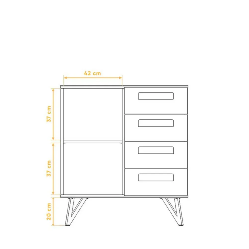 - Vier Schubladen mit Metallauszug und Soft Close Funktion, Innenhöhe ca. 13 cm