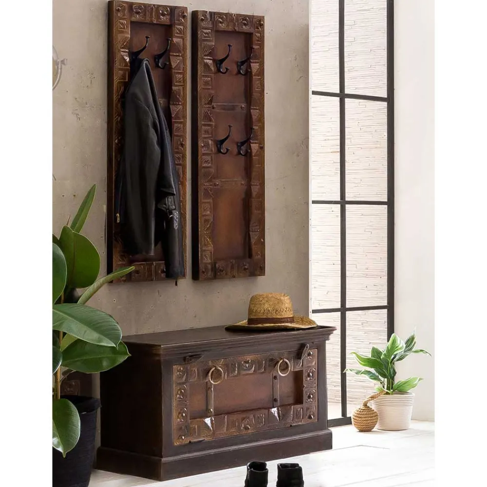 - Dekorative Garderobenmöbel in Teak antik Dunkelbraun