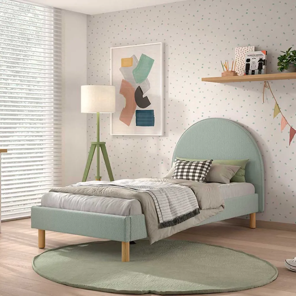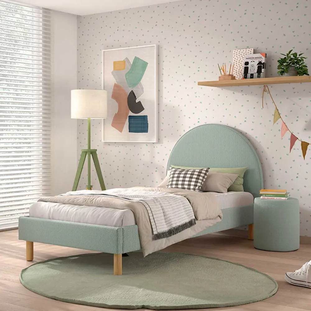 - Schickes Bett in Grün und Holz Naturfarben