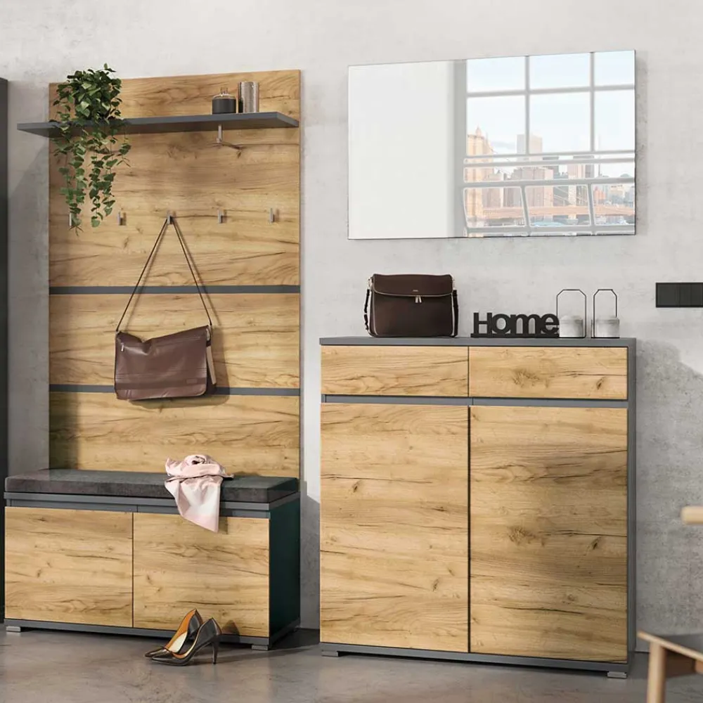 - Stilvolle Garderobenmöbel in Wildeichefarben und Anthrazit