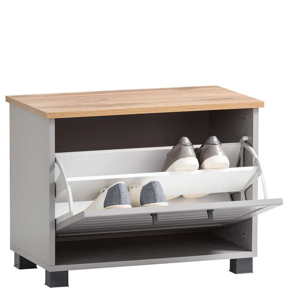 - Praktische Schuhbank in Platingrau und Eichefarben