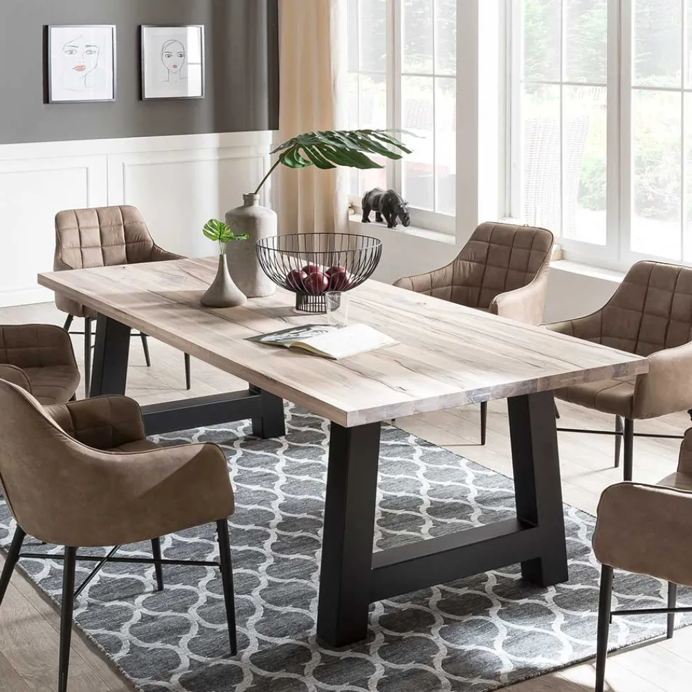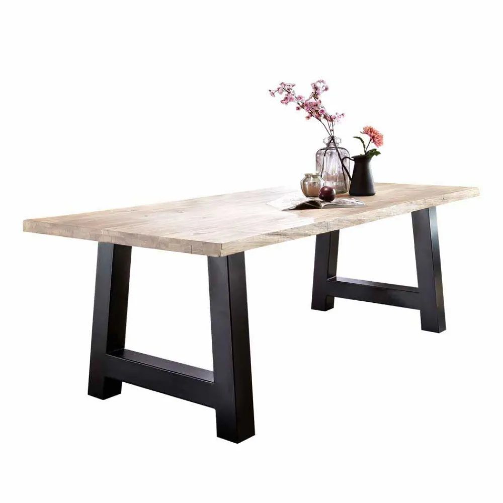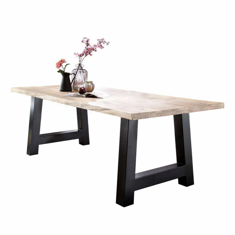 - Holzoberfläche weiß gekälkt, Metall schwarz pulverbeschichtet