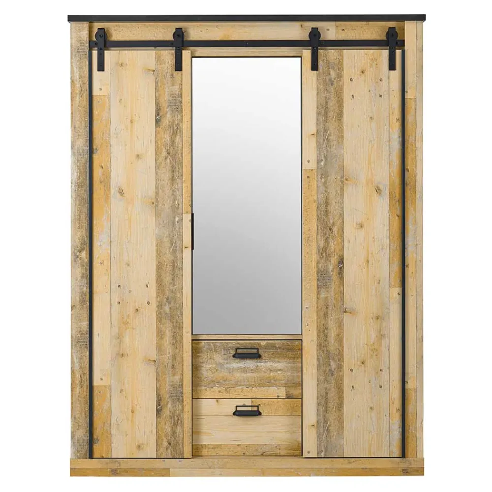 - Trendiger Kleiderschrank in Altholzoptik verwittert und Anthrazit