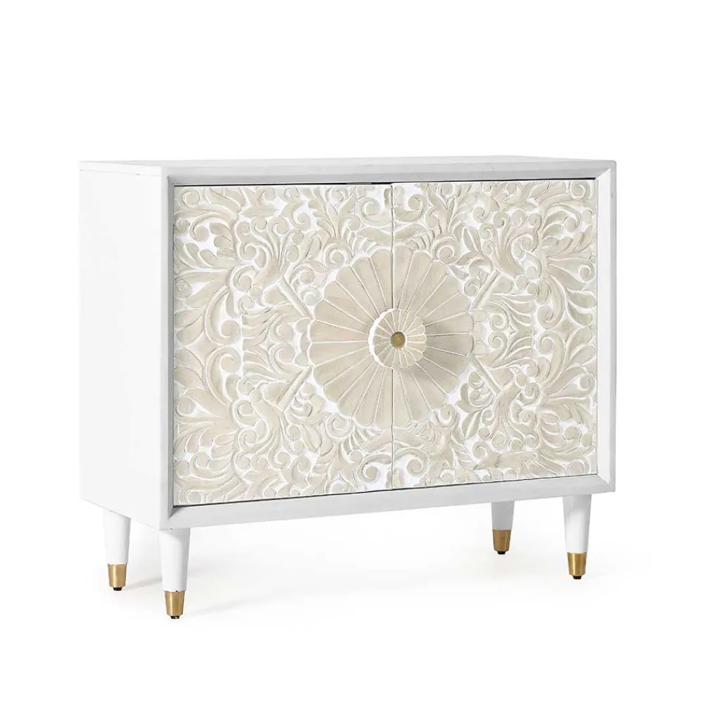- Aparte Kommode in Weiß-Cremeweiß mit Goldfarben