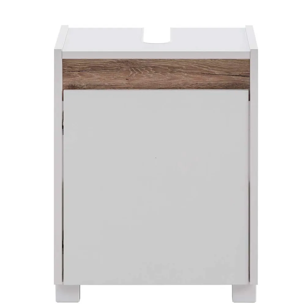 - Moderner Waschbeckenunterschrank in Weiß und Wildeichefarben
