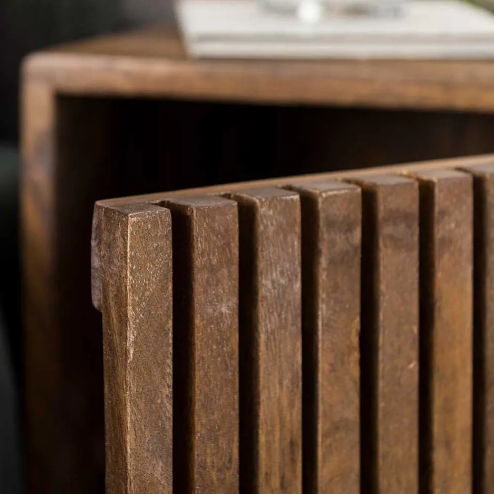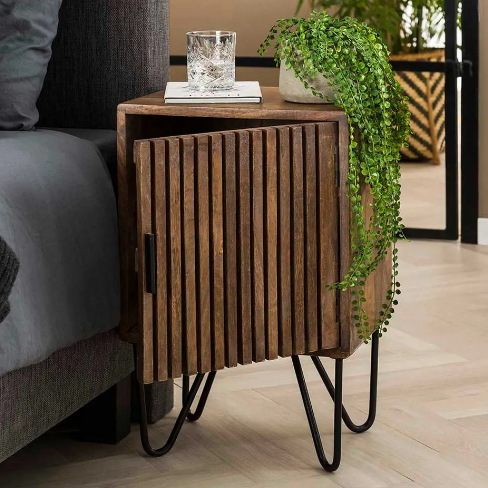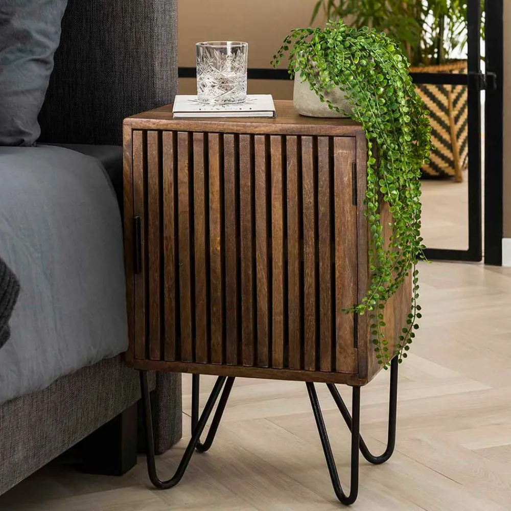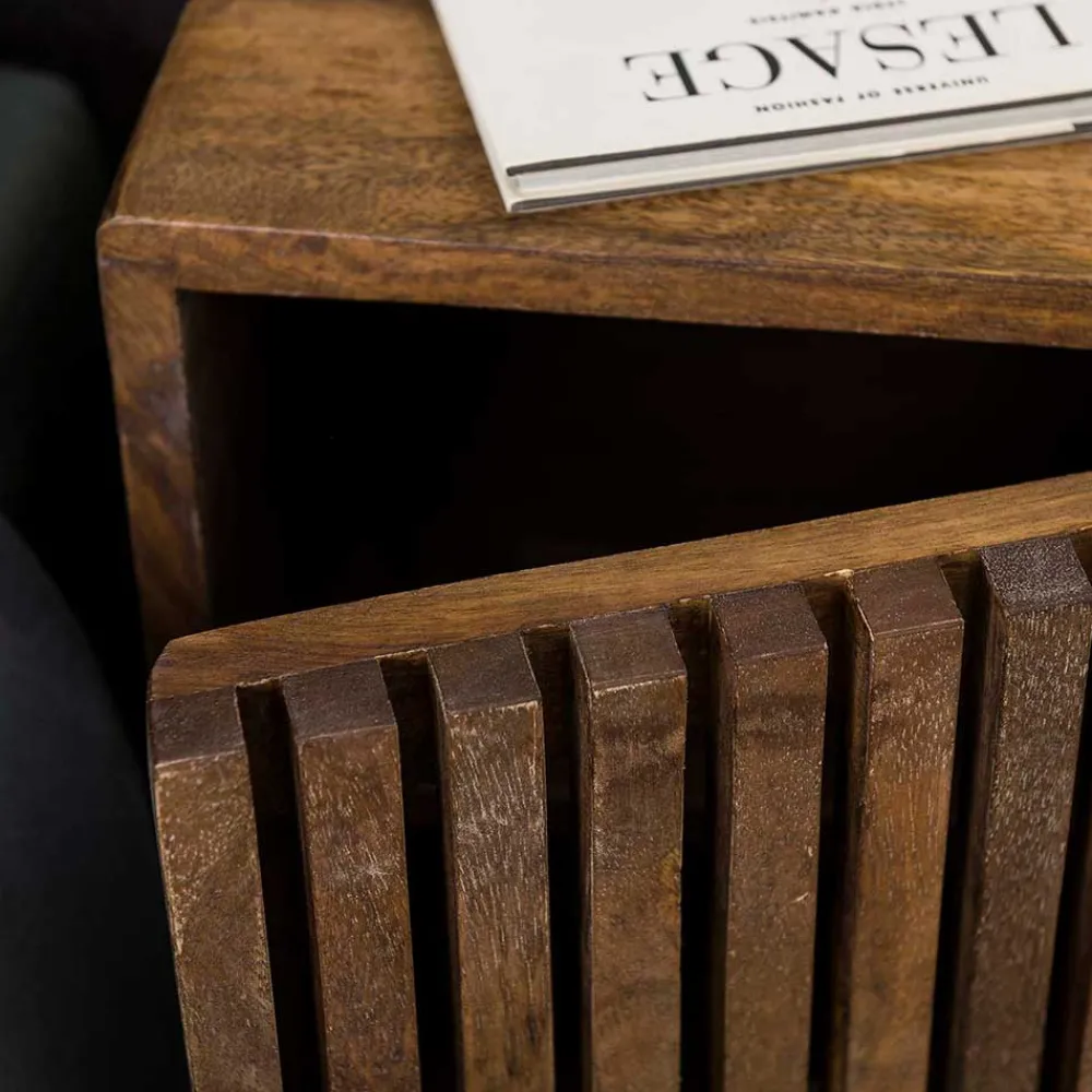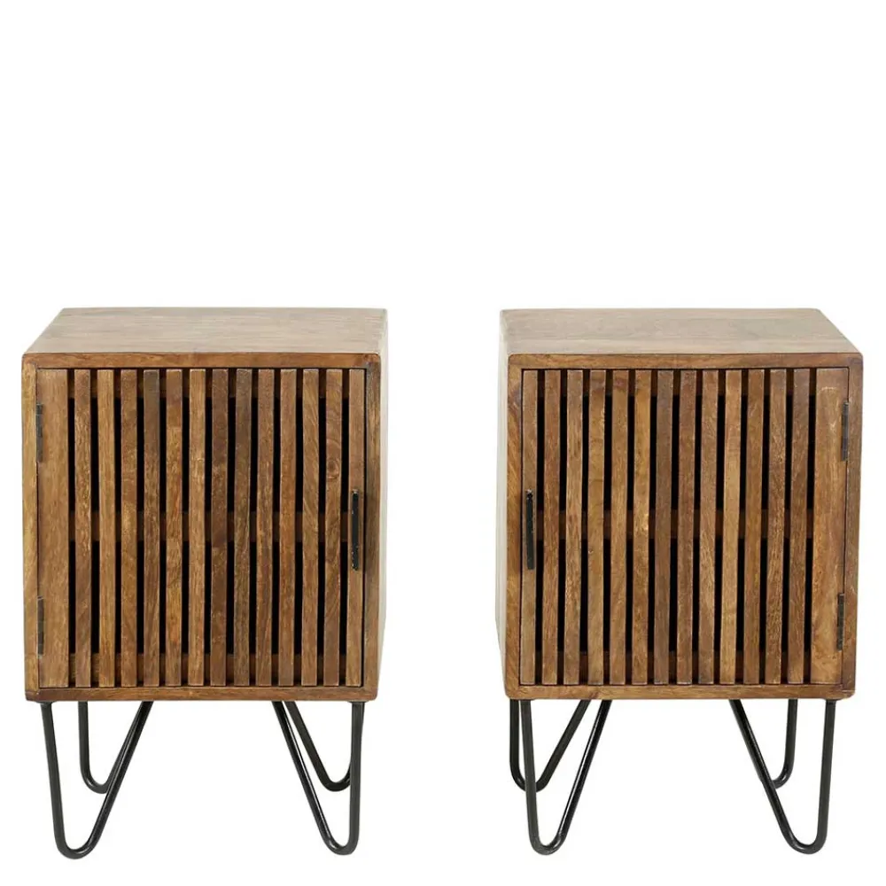 - Ansprechendes Nachttisch Set in Mangoholz Sand und Schwarz