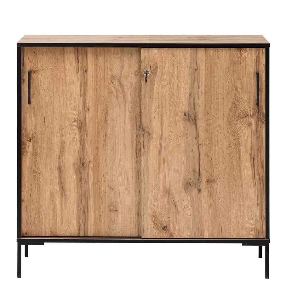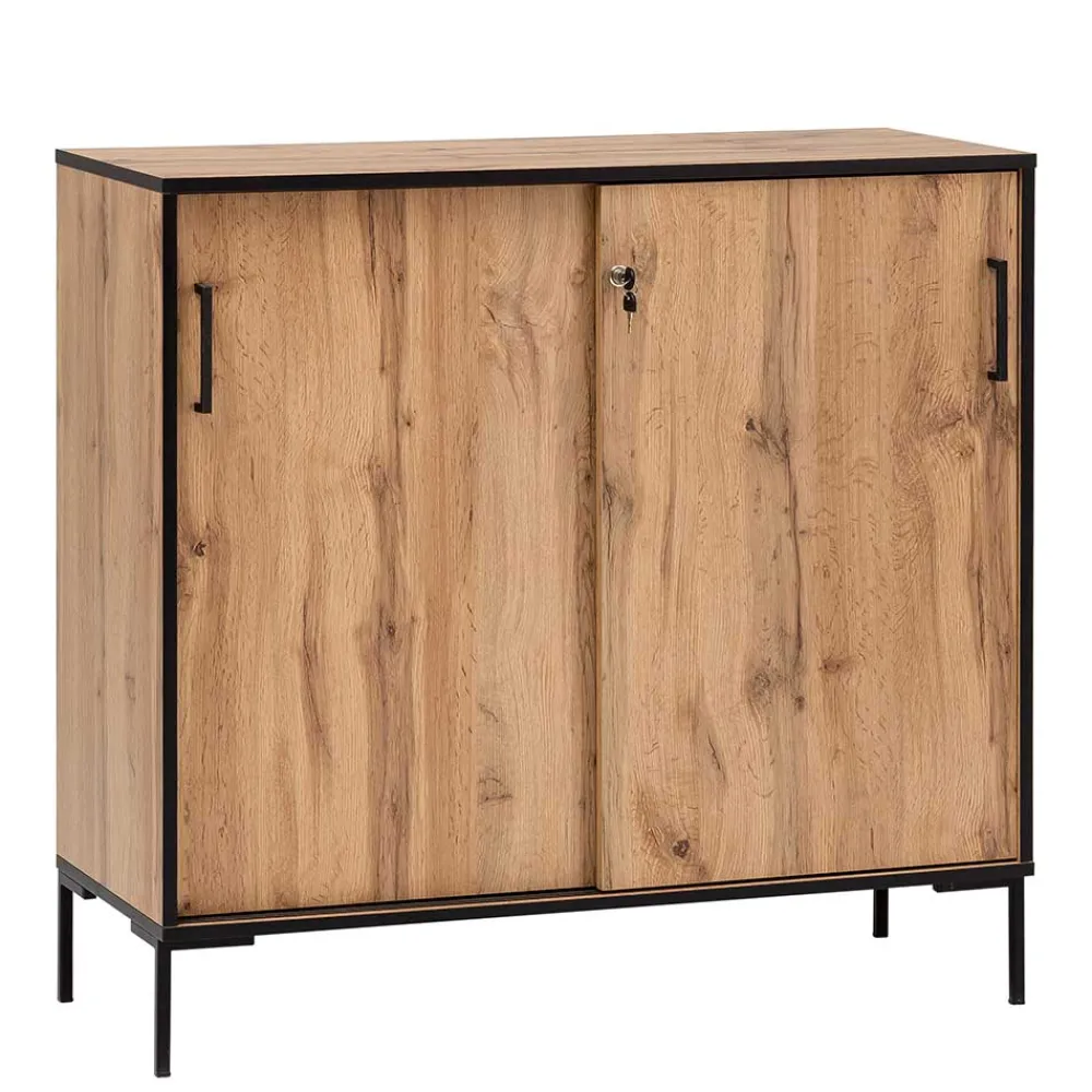 - Kompakter Aktenschrank in Eichefarben und Schwarz