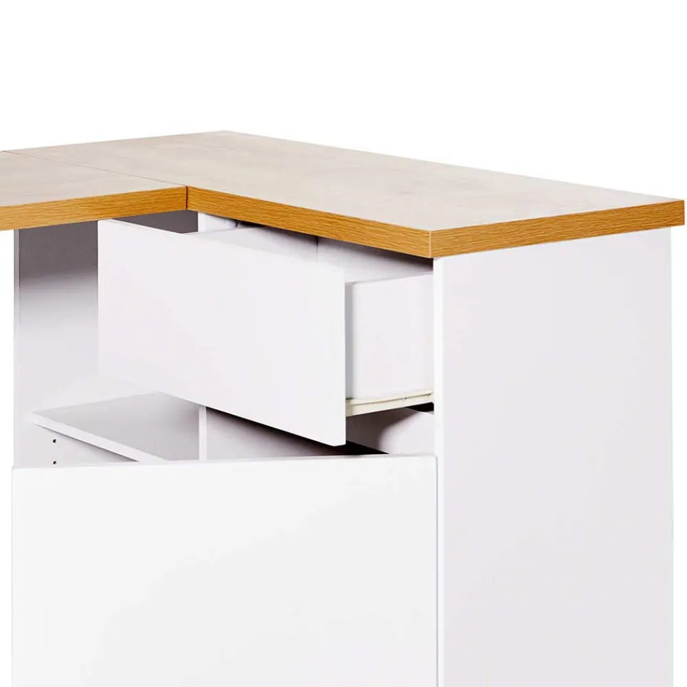 - Topaktueller Eckschreibtisch in Weiß und Kerneichefarben