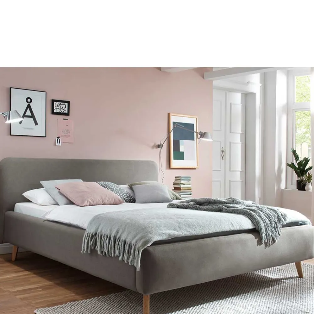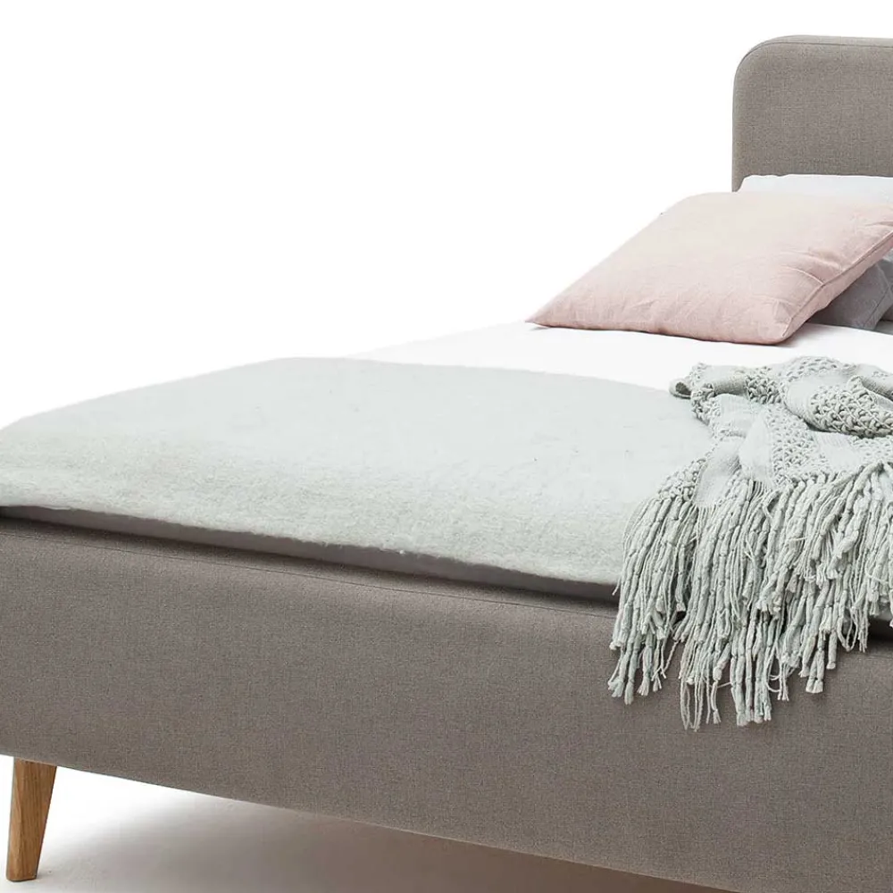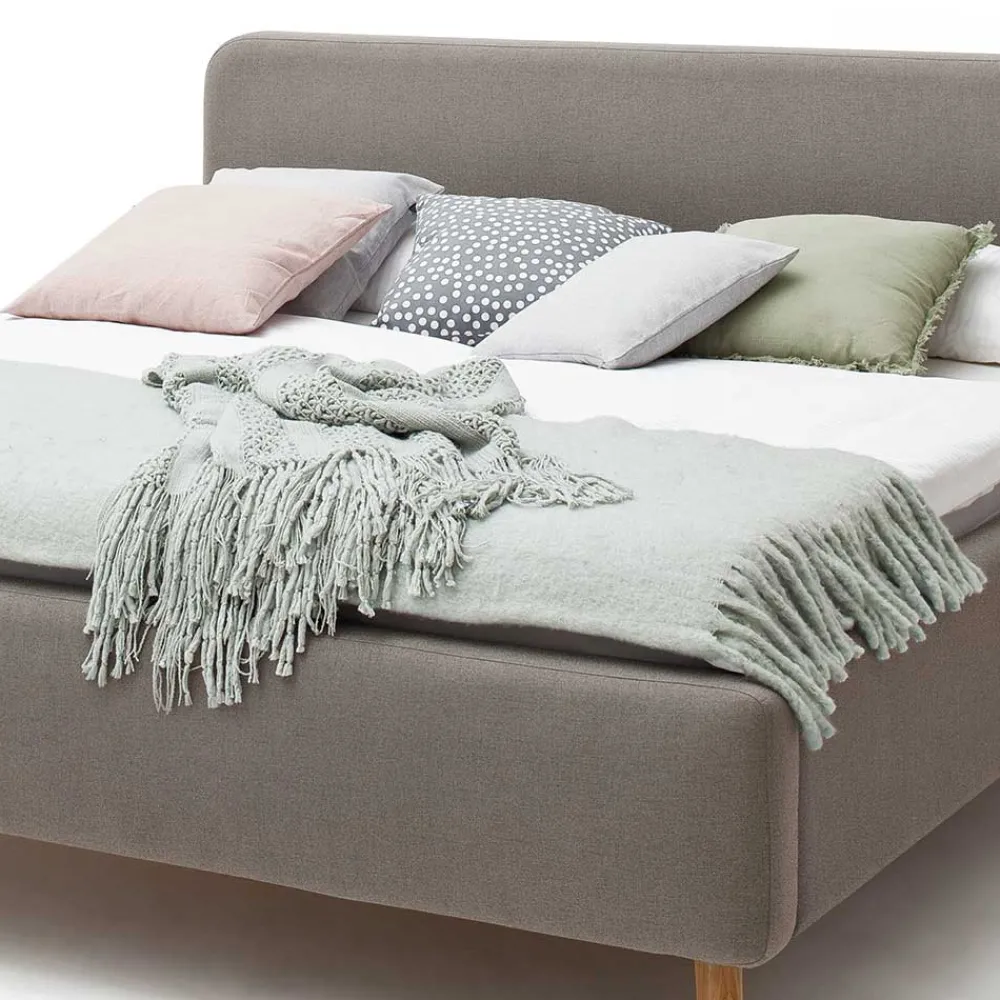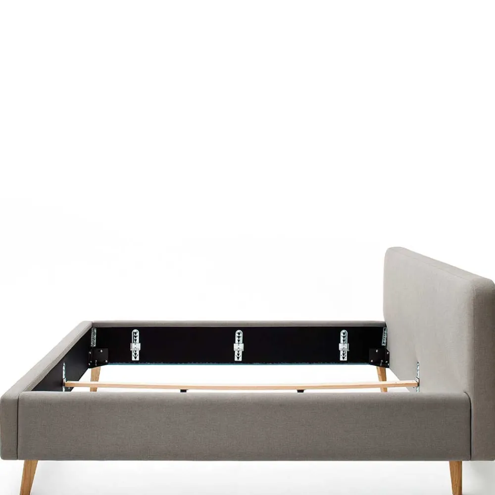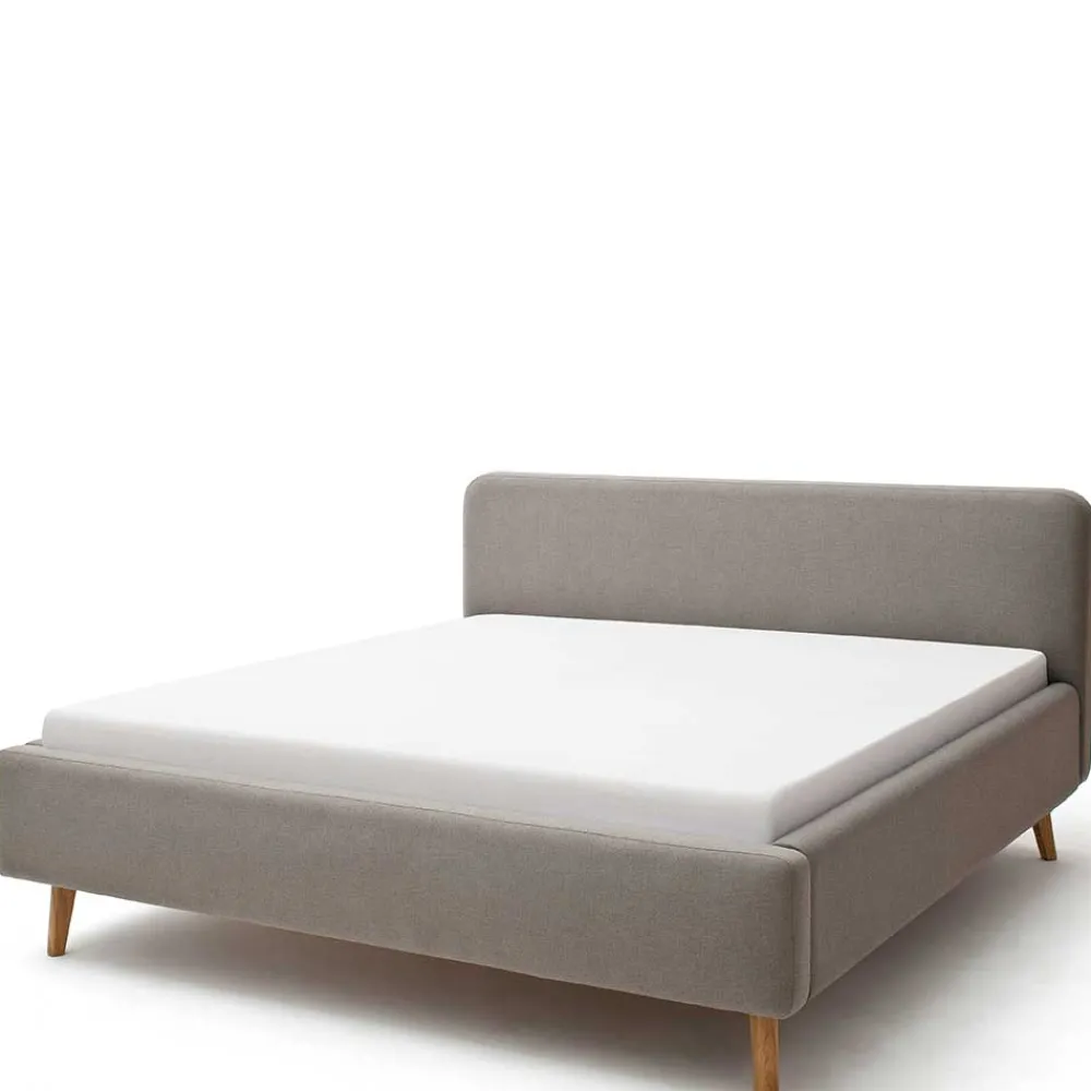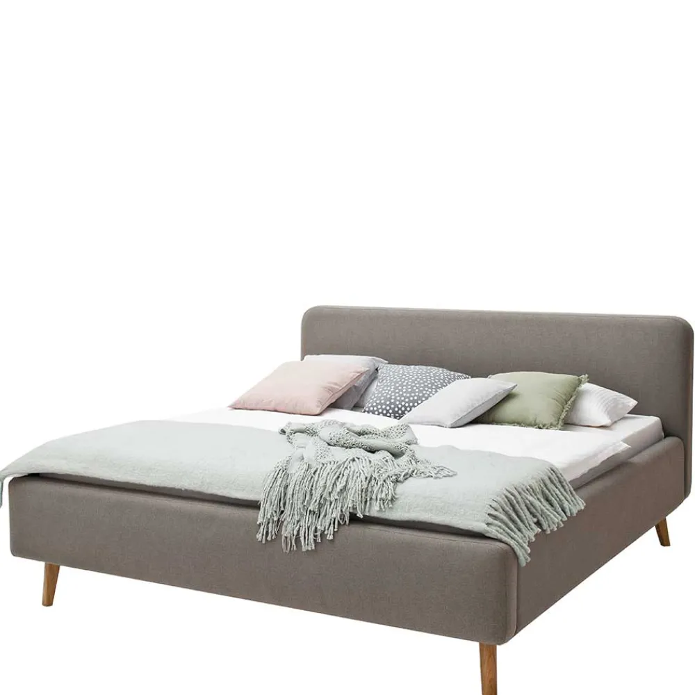 - Formschönes Polsterbett in Taupe und Eichefarben