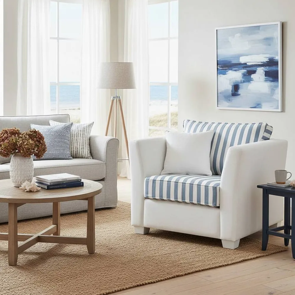 - Hervorragender Sessel in Cremeweiß und Blau