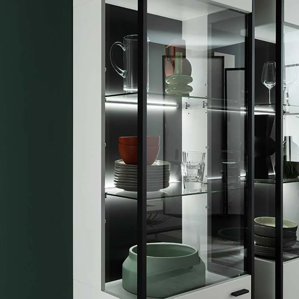 - Innen befinden sich drei Einlegeböden und zwei Glasböden (Floatglas klar)