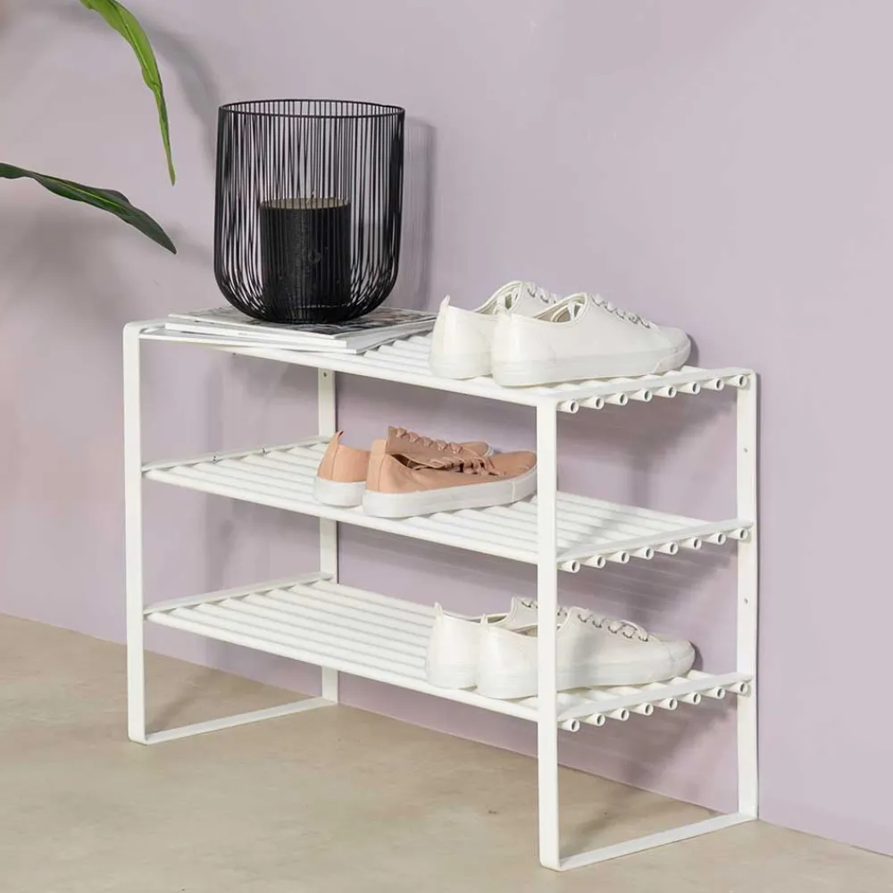 - Modern und stilvoll präsentiert sich das Schuhregal in klassischem Weiß