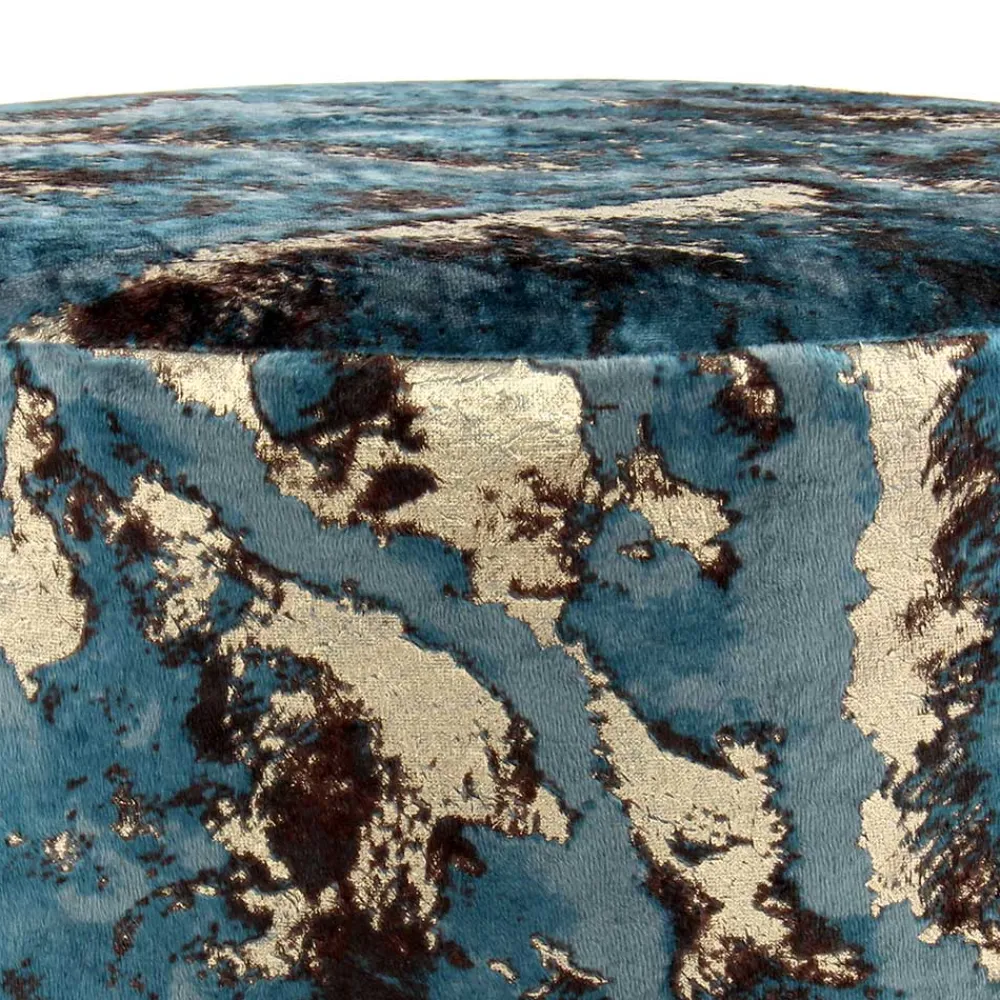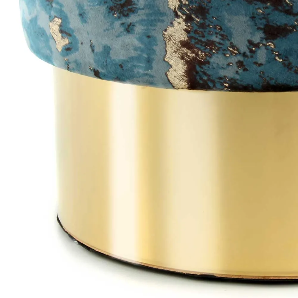 - Design Polsterhocker in Dunkelblau und Goldfarben