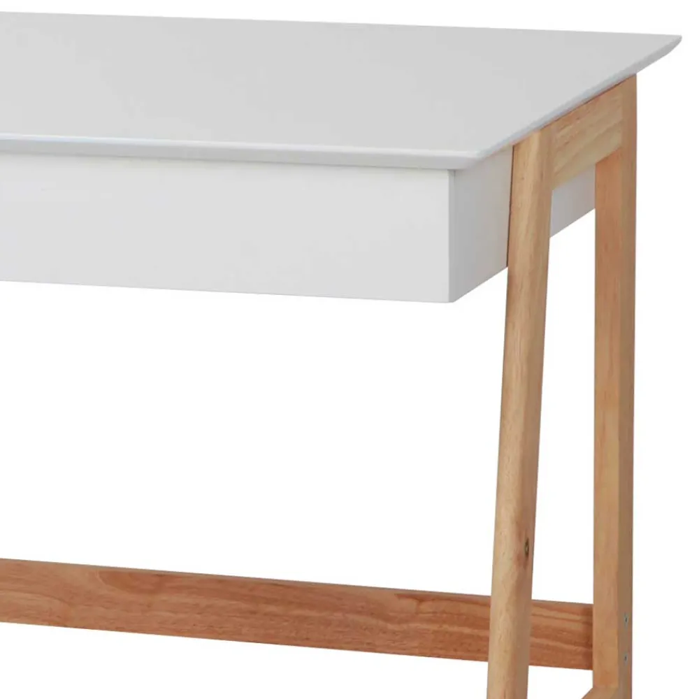 - Kompakter Schreibtisch in Weiß und Holz Naturfarben