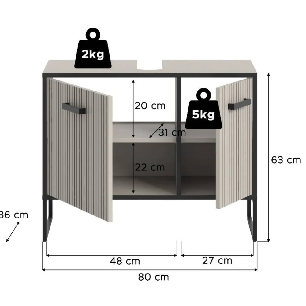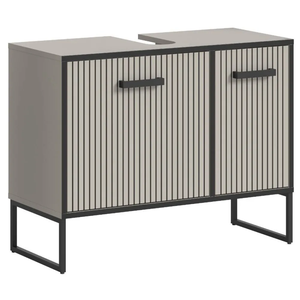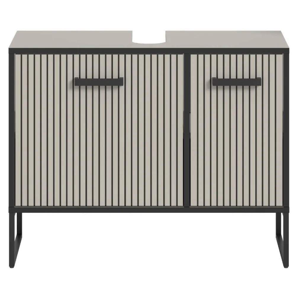 - Trendiger Bad Unterschrank in Hellgrau und Schwarz