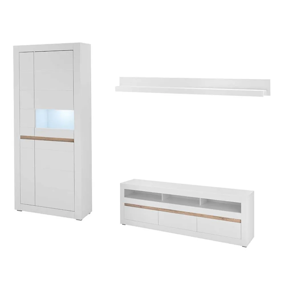 - Drei Löcher zur Kabelführung in der Rückwand des Lowboards vorhanden